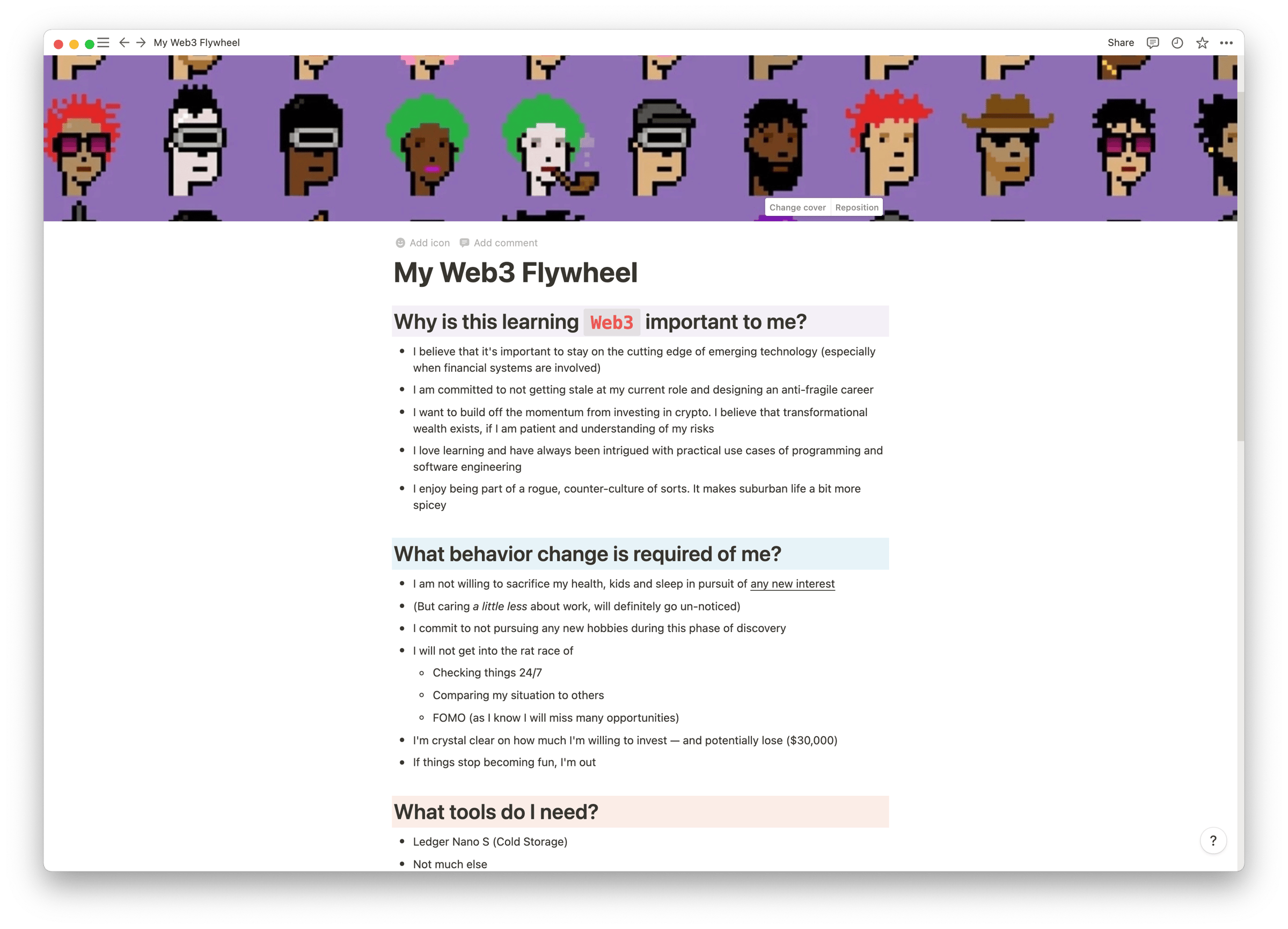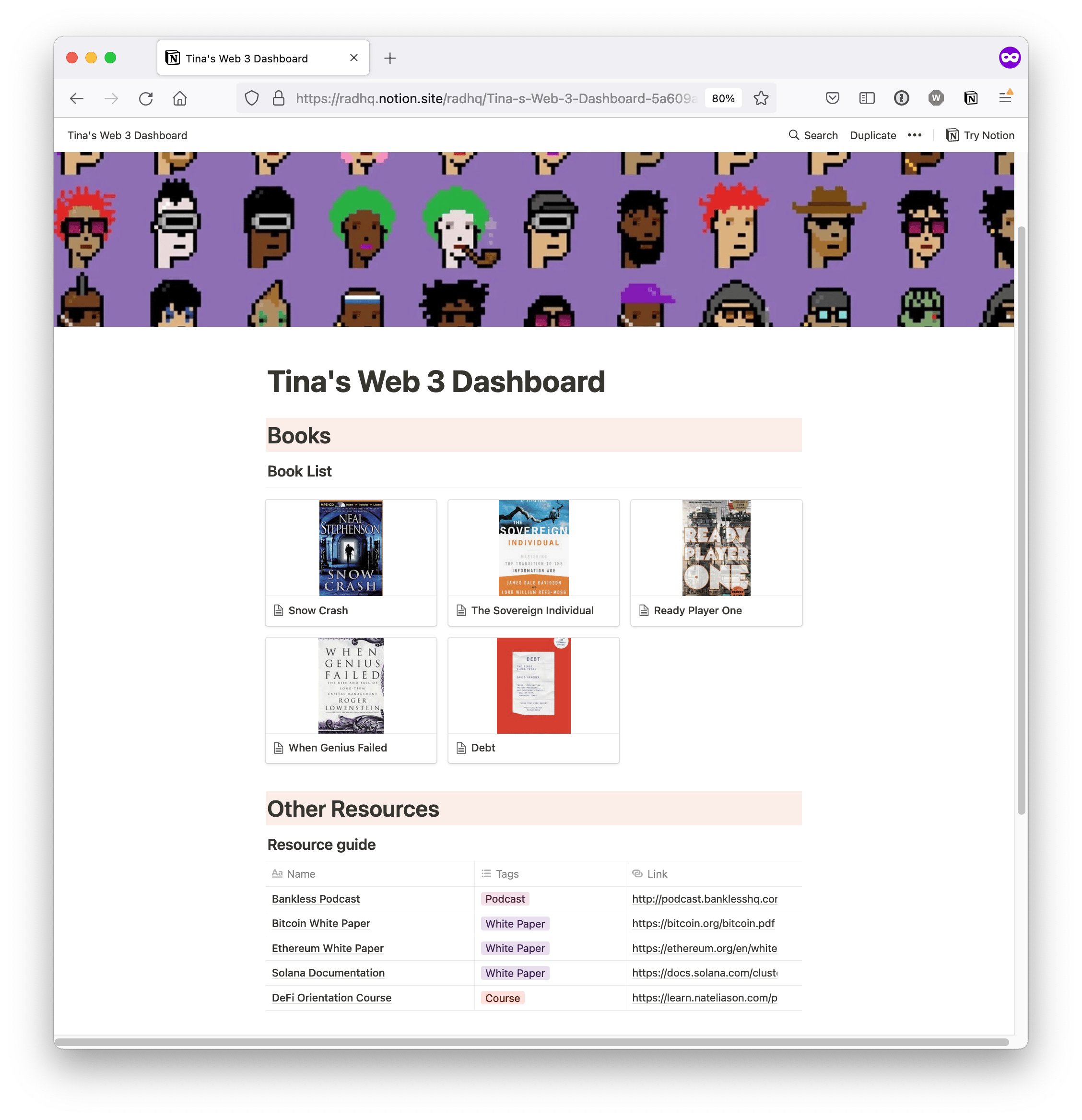 With 20 minutes until her next meeting, Tina fires up a new Notion page to create her Web3 learning plan.